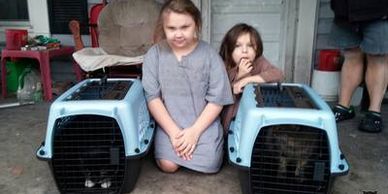 Little girls in San Juan del Sur, Nicaragua summer of 2017 helped bring kittens in crates to be helped by World Vets!